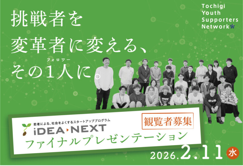 iDEA→NEXTはじめ、社会課題や地域活性化に関心を持つ若者の活動を支援する輪を広げるために、とちぎユースサポーターズネットワークでは寄付キャンペーンを実施しています。